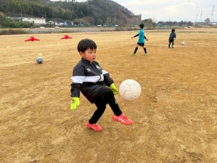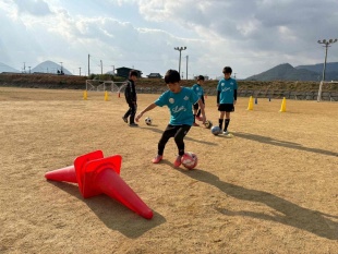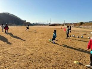 簡単なキック、ドリブル等を練習します。