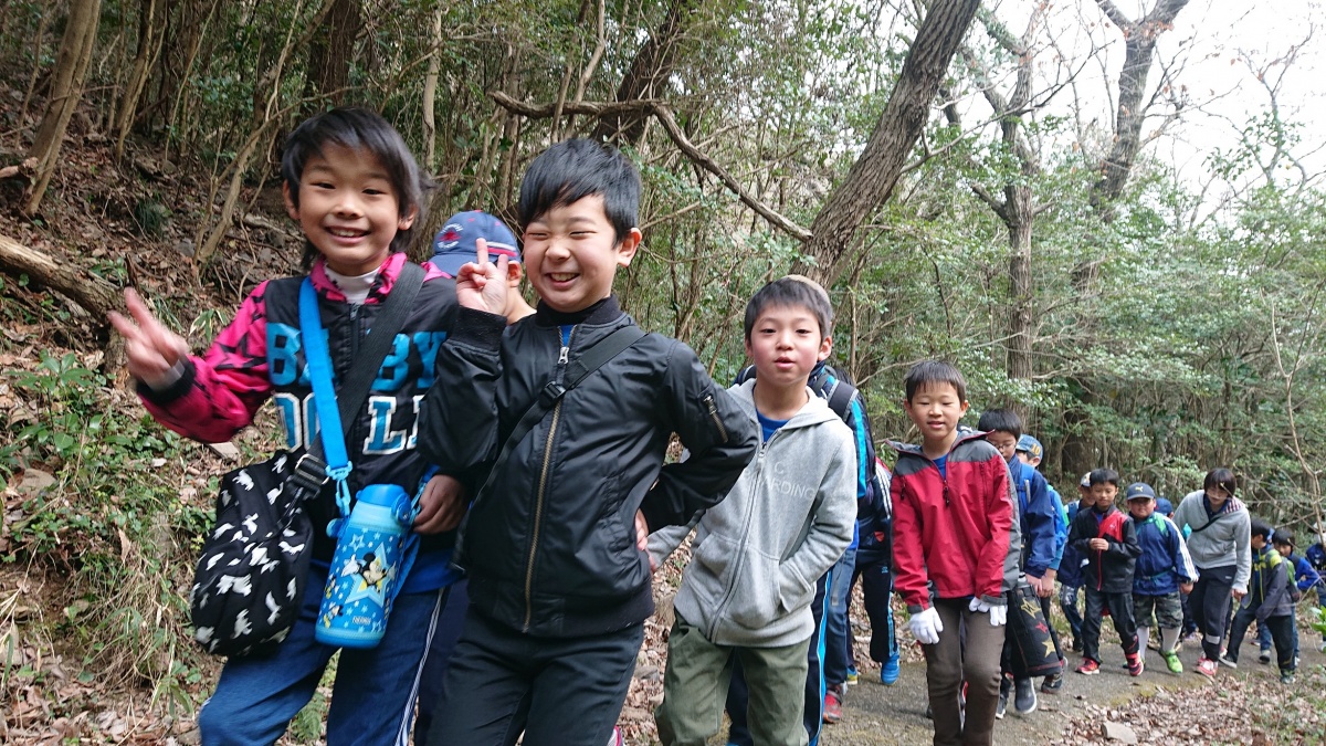 などと早速自然に触れ始め、楽しそうに山を登る子どもたち。