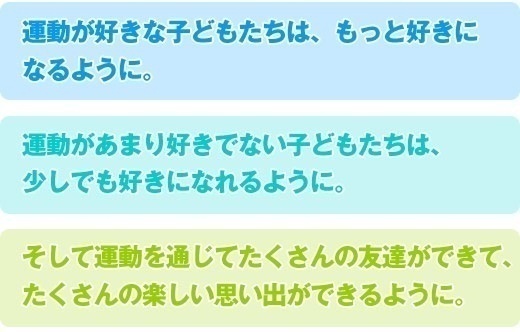 私たちは【運動が好きになるきっかけ】そのものがとても大切な事だと考えます。